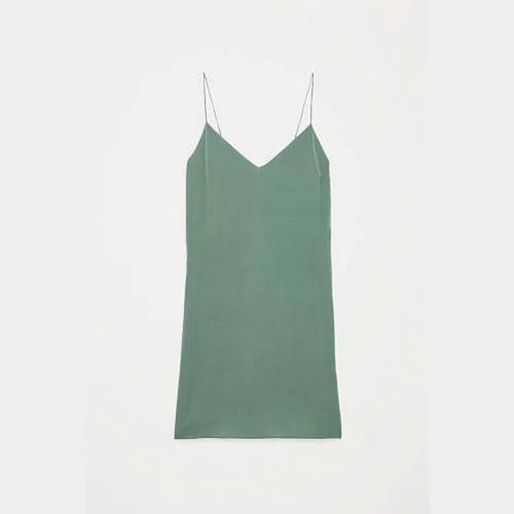 Constructed with a lower v-neckline, this beautiful jade green Cos slip is light and versatile.