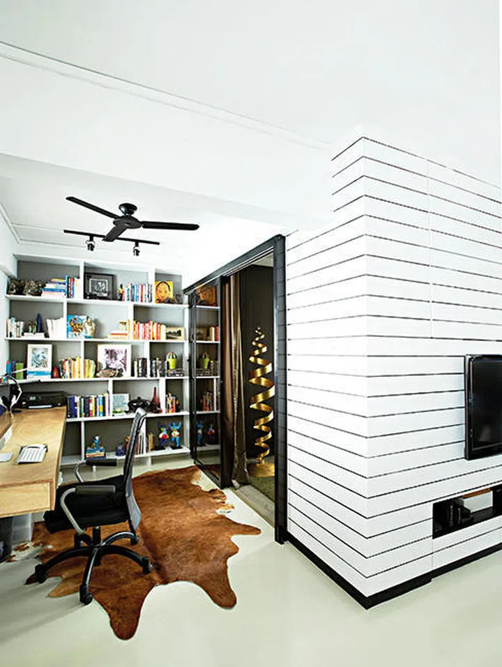 Yet another three-room HDB designed by the good people at BOX ID Studio, this bachelor pad is an exception to the norm of dark and broody man caves, with its balanced colour palette of black, white and some refreshing jolts of colour peppered here and there.