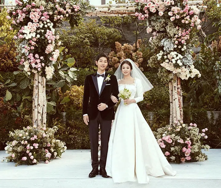 The 35-year-old Korean star married co-star Song Joong Ki in a custom long-sleeved A-line.