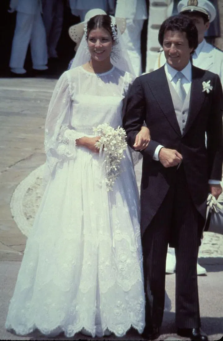 For her 1979 marriage to Philippe Junot, Princess Caroline of Monaco wore this airy lace design by Dior.