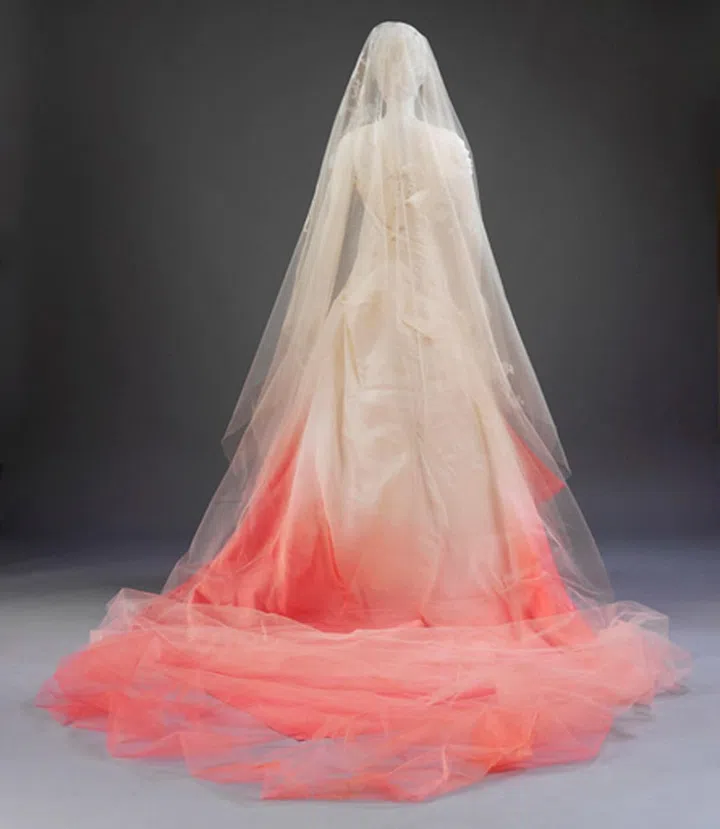 Who can forget Gwen Stefani's iconic dip-dyed pink wedding dress in her 2002 nuptials to Gavis Rossdale? It was created by British designer John Galliano who was head designer of the couture house, then.