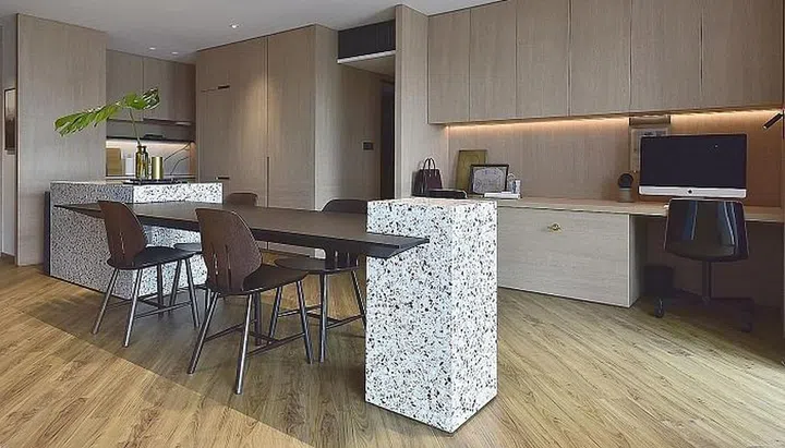 “We created a kitchen island that is a stove, dining table and TV console all at the same time. The layering of functions allows the limited space to have multiple dimensions,” he says of a project his team worked on.