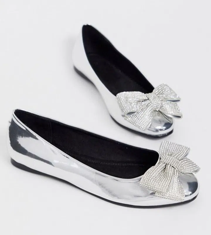 In a gleaming silver hue and with rhinestone-embellished bows, these will have you looking polished while oozing feminine charm.