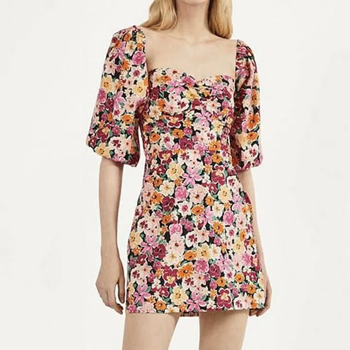 Shop: Floral dress with a bardot neckline, S$59.90 from Bershka
