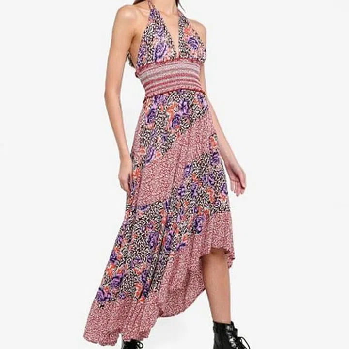 Apart from the crochet trend, the artisanal crafting vibes prominent throughout the season has also spilled over into the form of patchwork dresses. A mash-up of mismatched vintage florals and other printed fabrics pieced and sewn together to form carefree bohemian dresses fit for the ‘70s. This smocked waist dress features an asymmetrical hemline and a vibrant mix of contrasting floral prints. Style it with combat boots and a leather jacket.