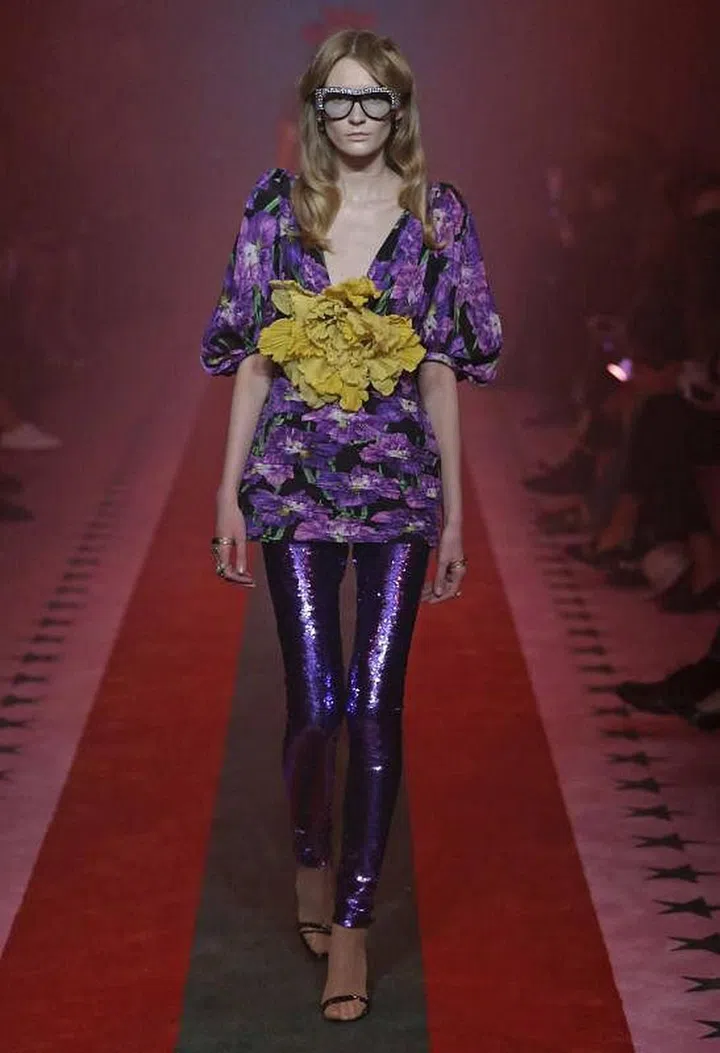 For Gucci’s Spring / Summer 2017 runway, the creative director glammed up normal leggings and tights with the help of shining sequins. We’ll admit it: This look isn’t for everybody, and it may be a tad too risky to try in the day (because of how outrageously shiny these are).