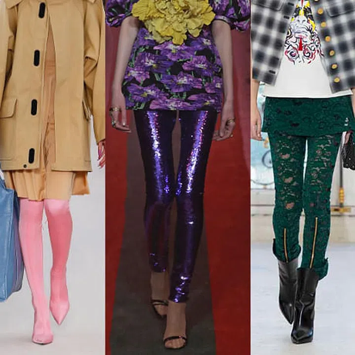 Over at Balenciaga, creative director Demna Gvasalia sent models wearing bright legging boots down the runway.