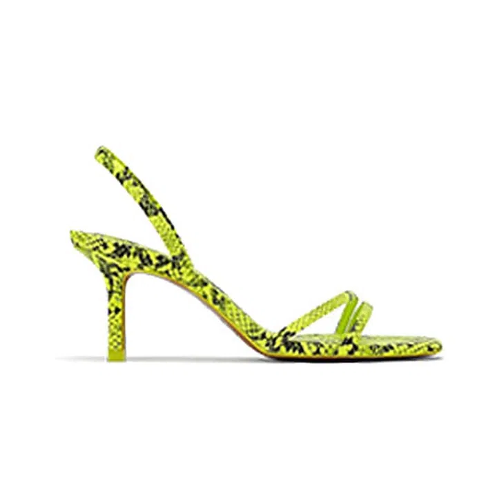 Mention animal print and neon lime, and you’d probably recoil a little. Too bold, you think? Actually, it works — when made into something delicate like these strappy sandals. This way, it keeps the bold fabric to a minimum so it’s feisty, but not aggressive. Pair with a black jumpsuit and you’re good to go. Extra points for lime earrings or a lime clutch, to match your shoes. Natch.