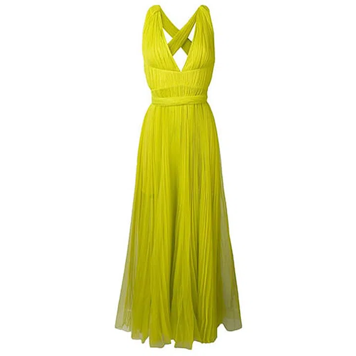Looking to make a grand entrance to your party? Then go for this stunning floor length lime gown. Sure, it’s not an ‘everyday’ dress, but it’s a fabulous choice for any spring formal events you might have in your diary. Featuring a plunge neckline and an empire line silhouette, the dress is a nod towards the Grecian era of styling, but adds a modern punch with its fiercely vibrant colour.