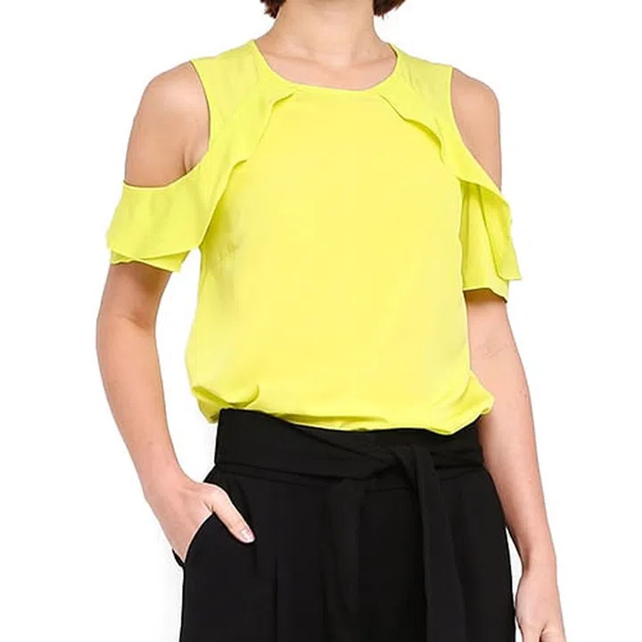 This light ruffled top is perfect if you want to inject some colour into your work week, as it can be easily paired with a skirt or a pair of pants. Make sure your bottoms are a darker hue though — such as black, grey or navy — to allow the vivid tinge to stand out. The open cut-out shoulders are a pretty touch too.