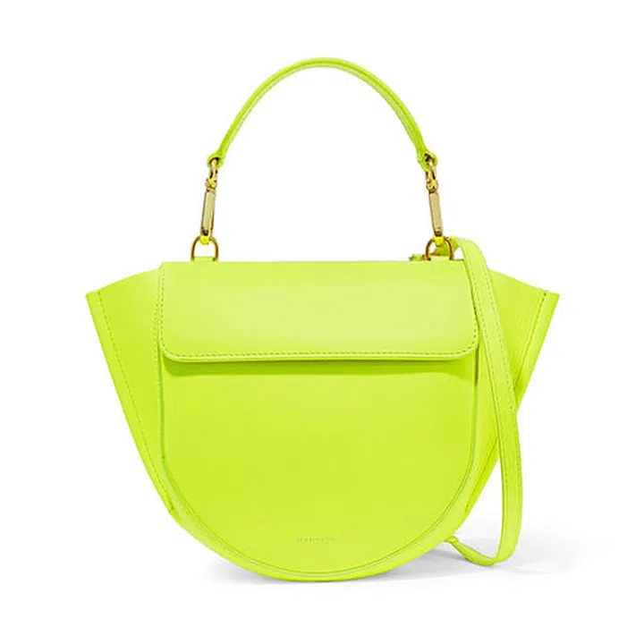 This so-bright-it-hurts mini ‘Hortensia’ bag from Wandler is made in Italy from smooth soft leather. Featuring a magnetic front flap fastening and the label’s signature half-moon shape, it’s a brilliant alternative to your daily handbag essential.