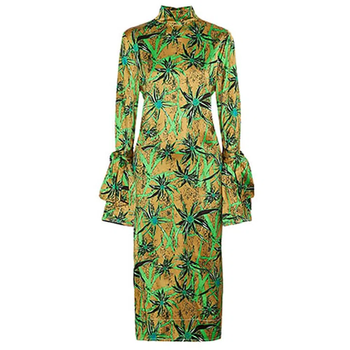 Made from printed satin, this dress is an easy way to work the neon lime hue into your outfit, minus the bold block colour. With fluted sleeves and a large bow tie up at the upper back, the dress is feminine yet fun. A real show-stopper that is appropriate for both work and play.
