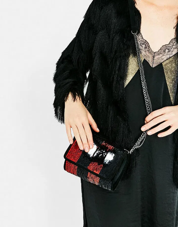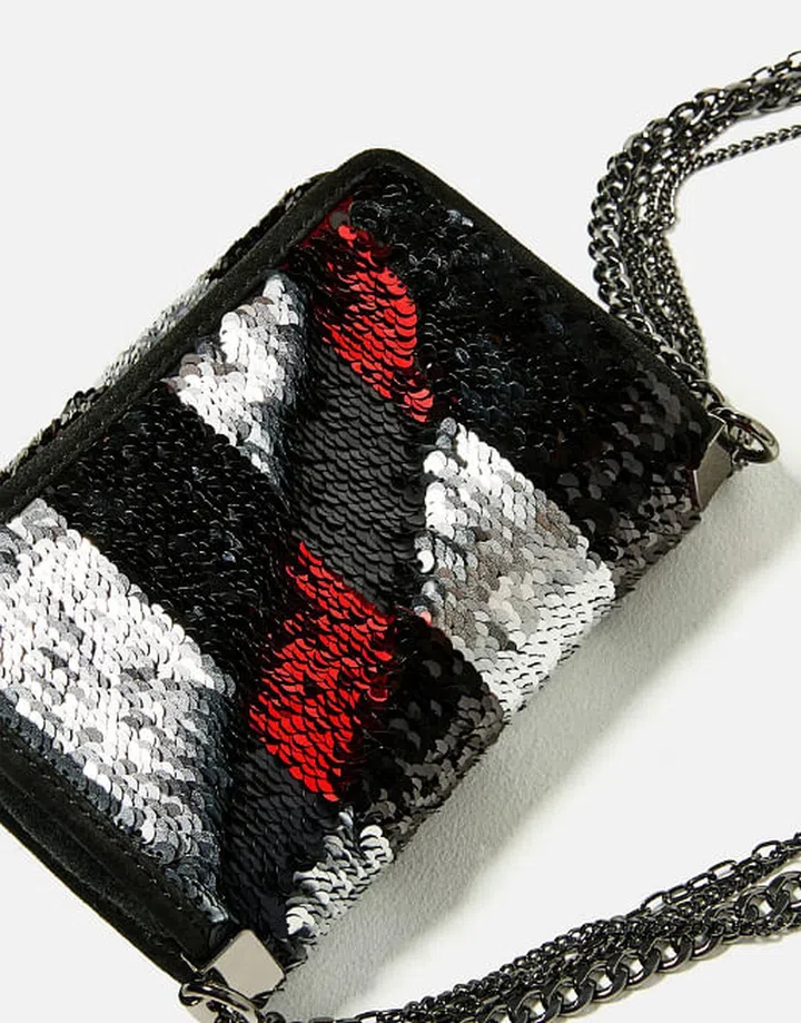 This fun sized bag comes with a super unique feature: you can change the colour of the bag just by running your fingers through the sequins!