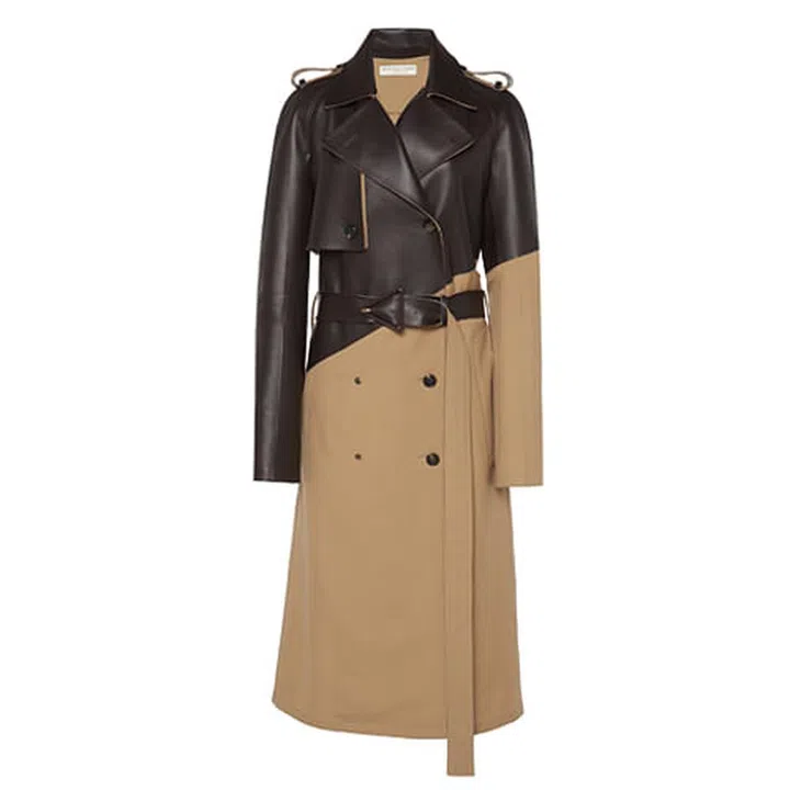 Bottega Veneta belted dual Wool and leather trench coat, US$3,950 from Moda Operandi