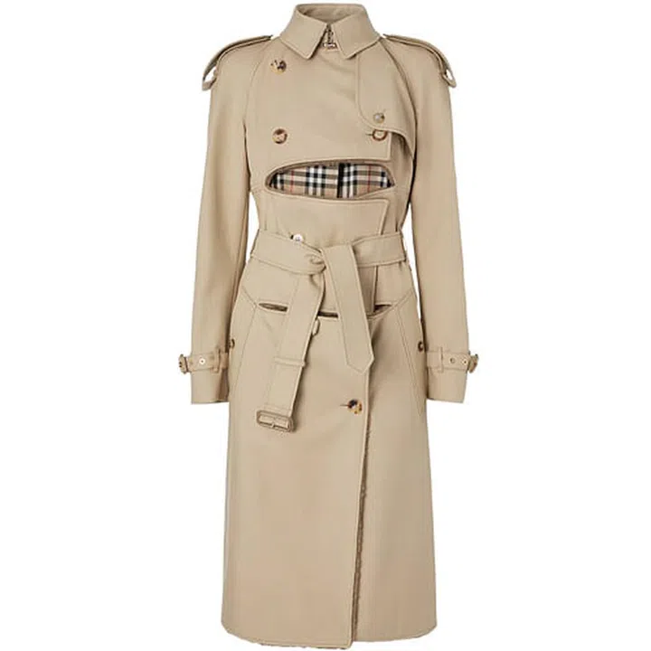 A major key player in the industry for luxury trench coats, Burberry’s affiliation with the classic British staple is prominent and well-celebrated. Taking apart the basic construction of the trench coat it knows so well, the brand strives to break conventions and sets new limits as to what a trench coat could look like with this new press-worthy number. Featuring unique cutouts at the front and a corset-like panel, this trench coat showcases the brand’s iconic heritage checks and elegant tailoring.