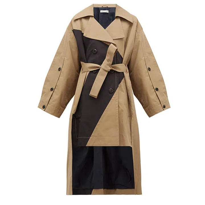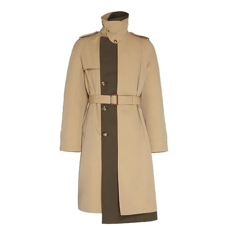Trench coats are a timeless fashion staple synonymous with heritage British dressing. It’s one of those items that successfully balances between being practical and looking effortlessly dressy and polished. Given that they’re a longstanding sine qua non wardrobe essential that has stood the test of ever changing trends, it’s safe to say that the construction of a trench coat possesses a level of predictability: crafted from heavy-duty, waterproof khaki gabardine, traditionally double-breasted, fitted with relaxed lapels and often finished with a wide waist belt.