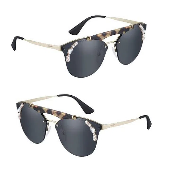 Prada has decided minimalism isn't their thing for next season's shades, delivering some sunglasses that ooze designer luxury. These frames feature a tortoiseshell nose bridge, circular lenses (which suit most face shapes) and have crystal embellishments on either side. They're on the right side of 'too much' whilst also displaying an overload of personality at the same time. We love them!