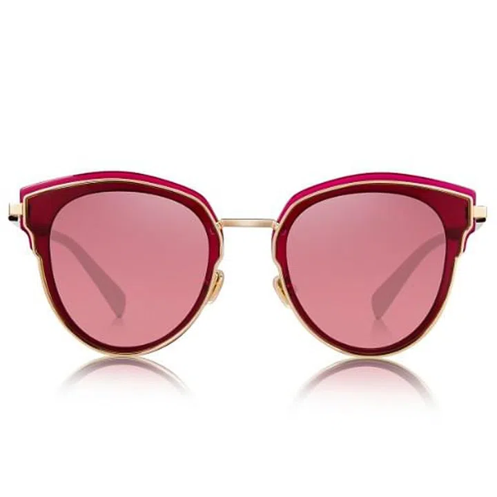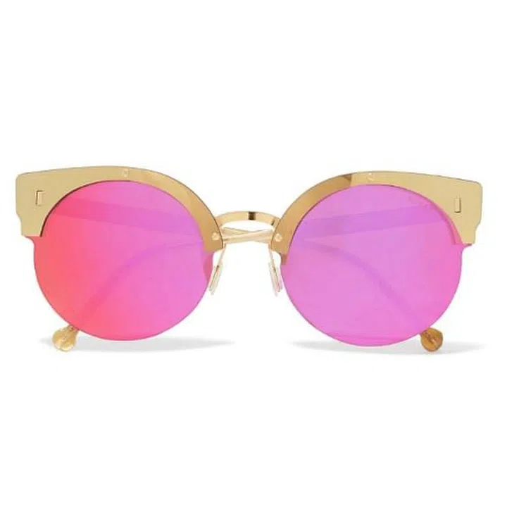 Pink to make the boys wink? Actually, we don’t care about whether they wink or not...we love these shades just because. Worn by the likes of Beyoncé, Jessica Alba and Rihanna. This pair is fitted with bright violet lenses that are mirrored to cut out glare. The gold-tone winged frames draw the eye upwards to make the face appear flatteringly longer.