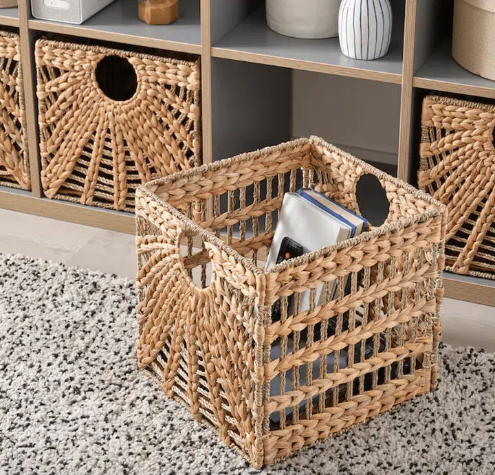 IKEA's shelving units and cabinets are well-loved for good reason. And if you already own one at home, then adding this basket to your shelf is a great way to spruce up your home and keep the clutter away. featuring an airy pattern and a warm colour scheme, this hand-woven basket adds texture to your shelf while also giving you a glimpse of what you store inside.