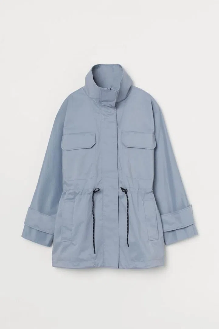 We like this H&M parka as the roomy design is fitted with adjustable drawstrings at the waist and hem that you can cinch the waist with. It is also available in light pink and black/dark grey.