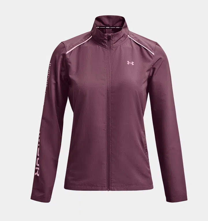 Under Armour employed its UA Storm technology that offers water-repelling, wind-resistant and breathable qualities in key areas, such as a mesh vent construction at the back, so you can be shielded from the elements without feeling overheated. Its reflective details are useful for low-light conditions. Besides purple, this jacket is also available in black.
