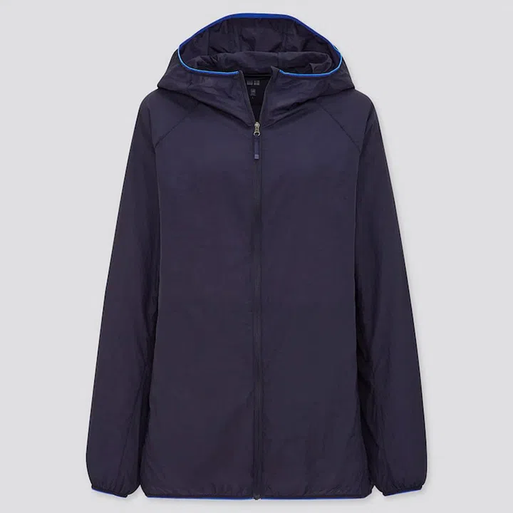 Made with lightweight water-repellent nylon fabric, this Uniqlo parka (with a hood) will keep you warm, and can be folded into a convenient interior pocket.