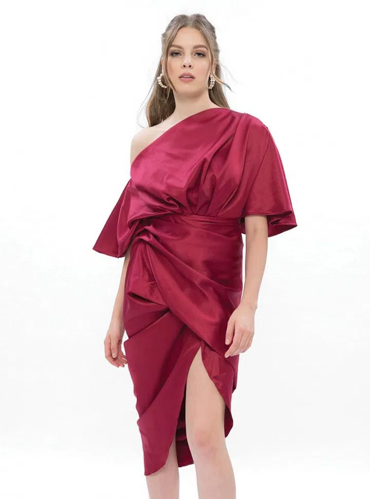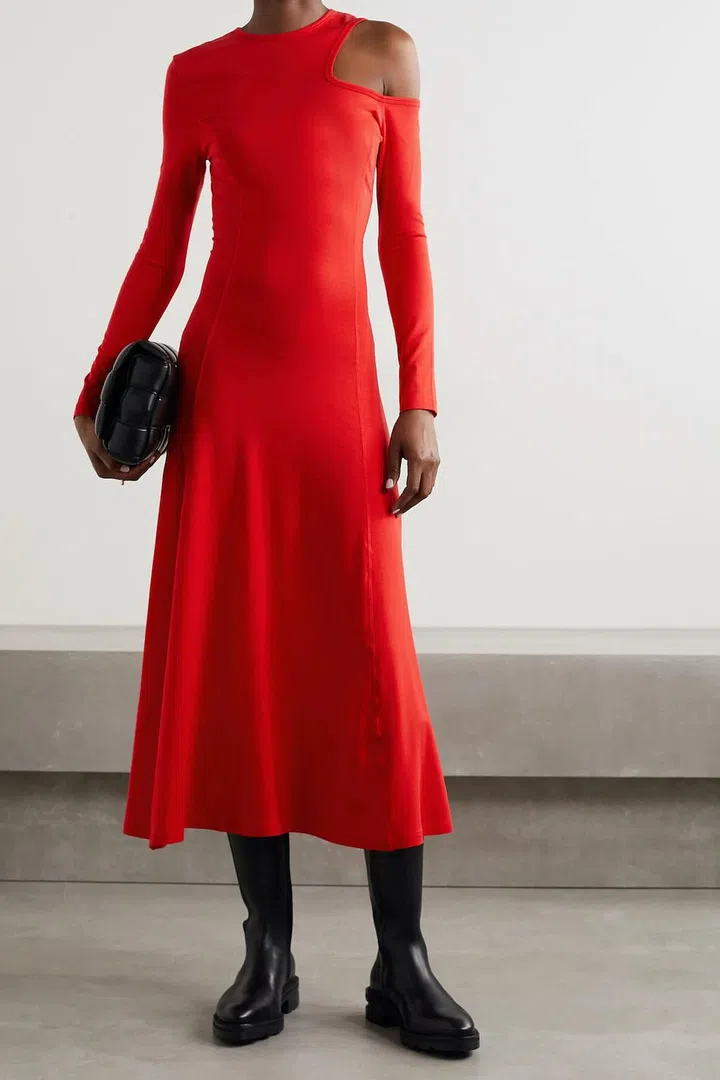 Despite the unique cutout that shows off a shoulder (pop some highlighter on and flaunt it!), this sporty dress can easily be incorporated for work and weekends. Anything from boots, heels to sneakers would complement the dress.