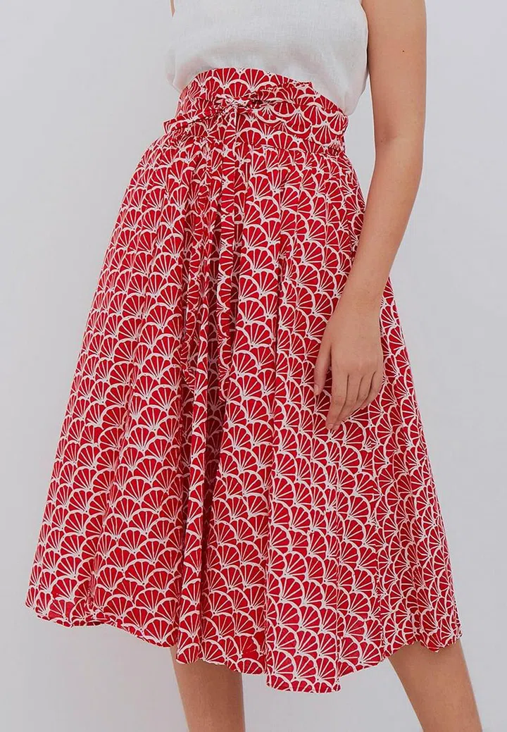 The easiest way to dress up a plain white tee? Reach for a printed red and white skirt, such as the batik piece above, to add some pizazz to your #OOTD.