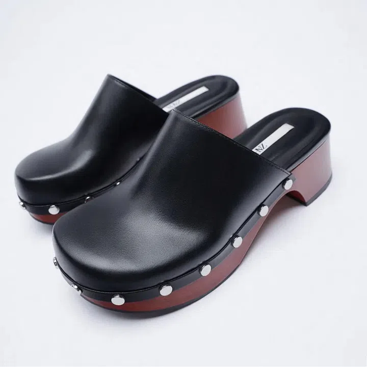 Zara seems to be redoubling its efforts on the clunky-made-chic shoe styles with its very own Studded Mule Clogs.