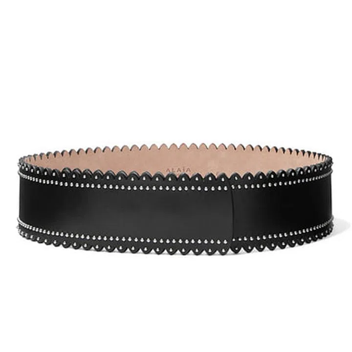Founded by Azzedine Adaia, who was known for her skillful craftsmanship of pieces that tactfully accentuate the female figure, this waist belt features feminine scalloped edges and dainty silver studs that have been skillfully applied by hand along the edges. Use this to introduce a girlish vibe to an oversized tailored suit or wear this with a crop top and a baggy pair of masculine-cut trousers.
