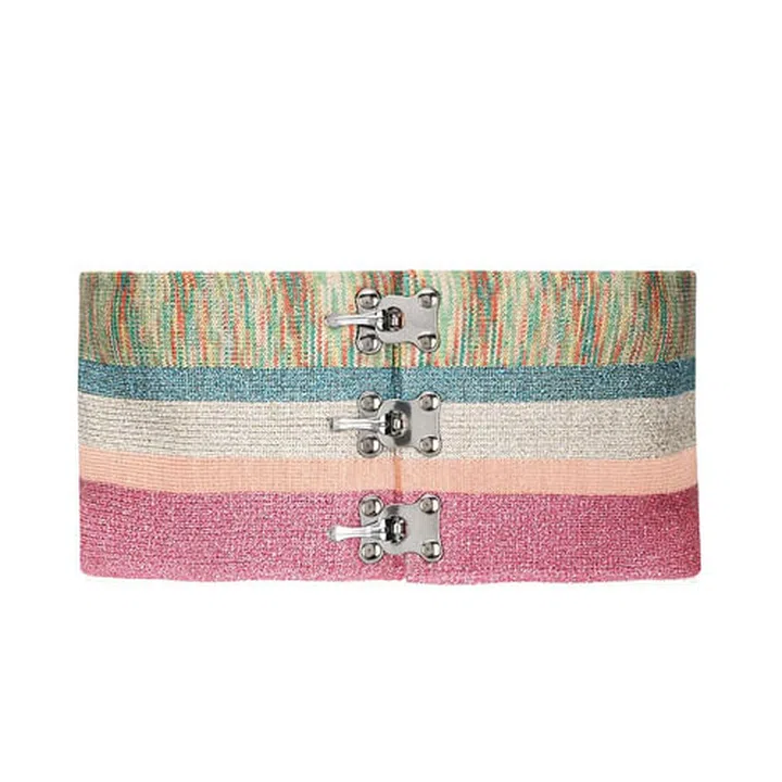 Missoni’s iconic punchy multicoloured stripes are showcased on this thick, stretchable belt with clasp fastenings. Inspire a zestful, energetic vibe to your outfit with this number by teaming it with a monochromatic ensemble and allow it to standout at its full potential. We suggest a white cotton crochet dress and a pair of minimalist white naked sandals.