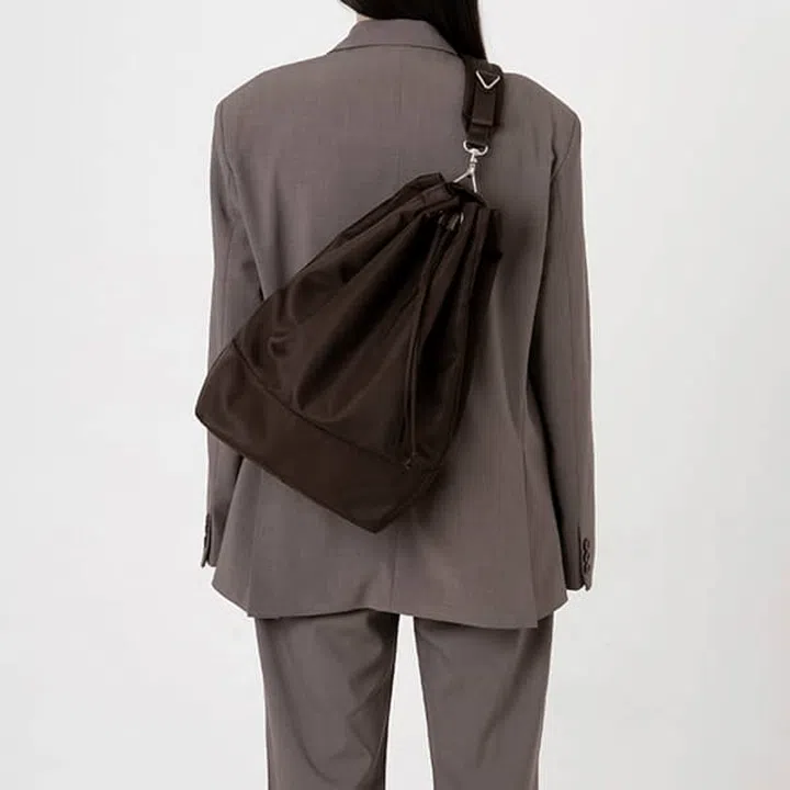 Hah Archive is a South Korean bag label, and this iteration is made with nylon that has been treated to repel water. Besides chocolate brown, the bag is available in burgundy, black, white and beige.