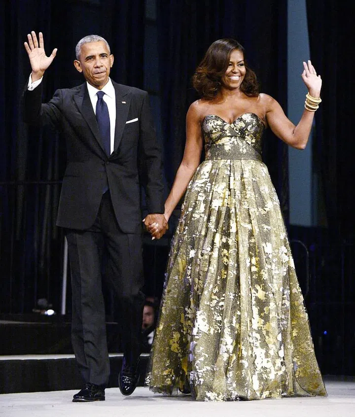 We do heart her so. She knows what will win our hearts, which includes the earthy ethereal palette of this floor-length gown. While Barack wears his two-piece suit well enough, Michelle is the one who wins this fash-election.