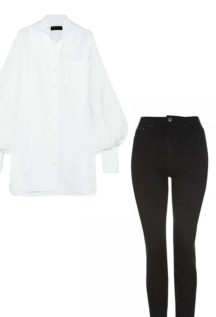 Shirt dress, $1,731.60 by Burberry at Net-a-porter; jeans, $89.90 by Topshop