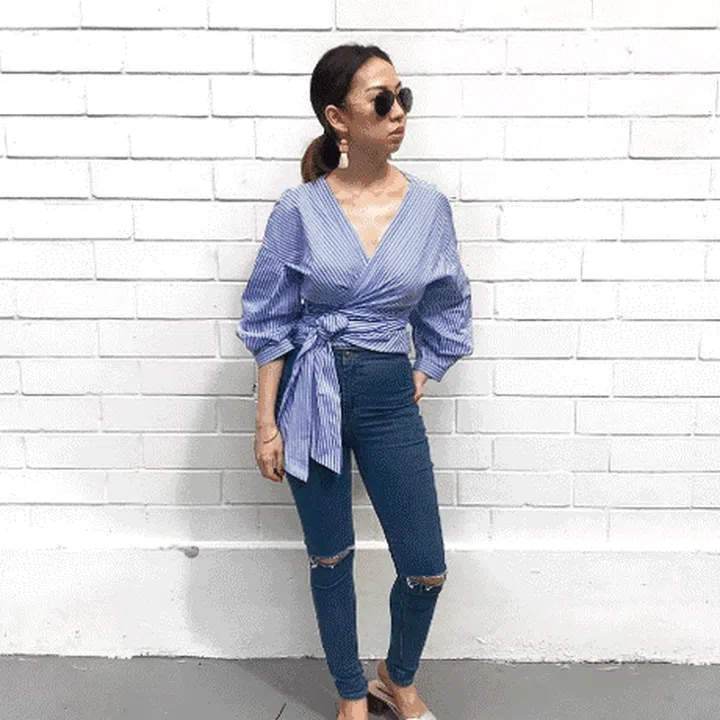 If the t-shirt and jeans combo is starting to bore you out, switch things up with a shirt featuring big, exaggerated sleeves.