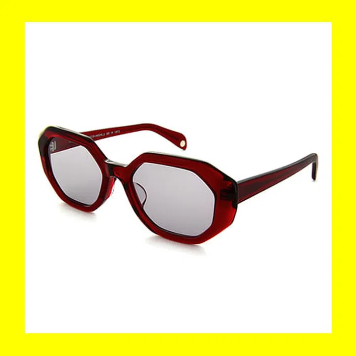 The octagon shape (FYI in case you were falling asleep during math class, an octagon has eight sides) might throw you off a little but this pair’s lack of hard lines makes it surprisingly wearable (think of it as a more squarish circle). The shade of ruby red too makes it the perfect pop of colour when worn with neutrals.