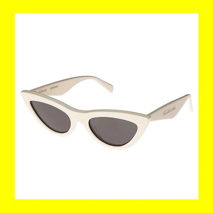 You see a pair of classy sunglasses in an uncommon shape (squircle?) but we see a pair that instantly makes you look like you’ve stepped out of a Wes Anderson film (is it the orange tinted lenses? We certainly think so). If you ask for our opinion, it’s best paired with summer dresses and coloured eye makeup (preferably in turquoise or green).