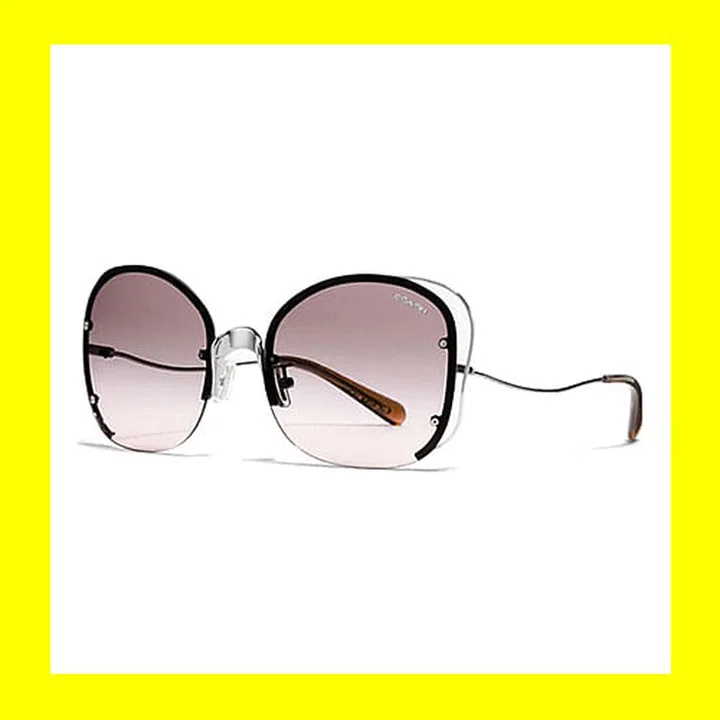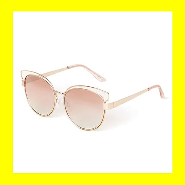 This is the pair of sunglasses that definitely looks as good from the front as it does from the side: Purple tinted lenses (a rarity in the eyewear world it seems) with a contrasting silver cut-out effect frame your eyes and a squiggly line frames the sides. Bonus points too for how oversized it is to keep people and the sunlight away.