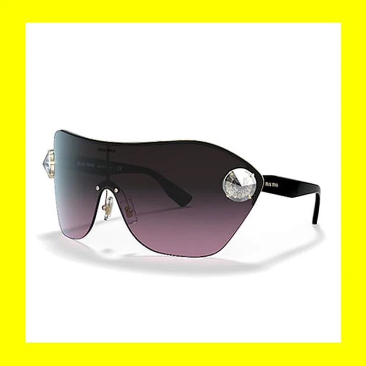 It’s big. Like, covers-half-your-face big, which is why this pair of Miu Miu sunglasses can be equated to a shield. It’s the pair you put on when you’re in a don’t-talk-to-me mood or when you’re too lazy to put on makeup. For the latter, the giant crystals on the sides are the only touch of sparkle you need.