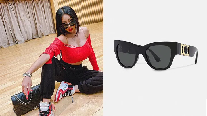 Prefer something that's a little more classic? Peep Versace's butterfly-shaped square sunglasses as seen on Korean rapper, Jessi. The star, who recently garnered more popularity with her song 'Zoom', opts for a more casual look with her red and black outfit, accessorised with her the Medusa Biggie Butterfly Sunglasses that boasts a simple yet bold design that's inspired by '90s hip-hop culture and is very befitting for Jessi's usual style.
