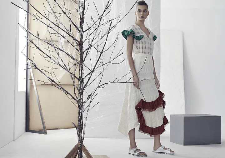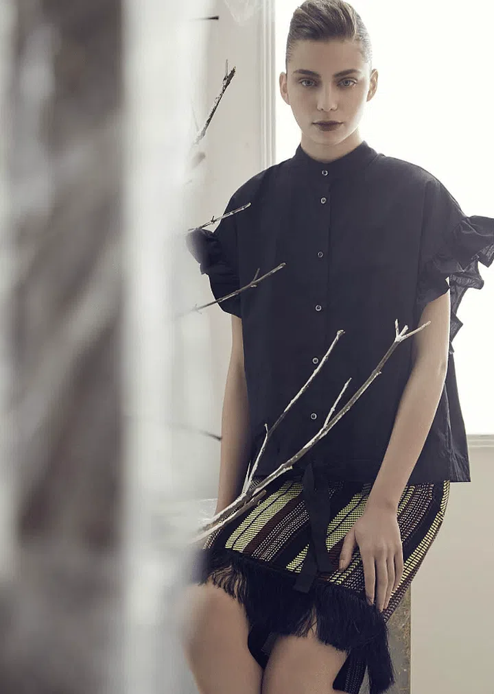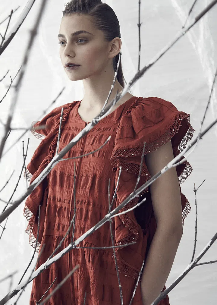 The magic in working a double-ruffled look (as we like to call it) is balance and proportion. If there is too much volume from the ruffles, tone it down in the fabric department: Pick pieces that come in lightweight, summery materials such as silk chiffon and cotton voile.