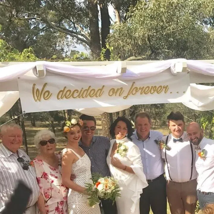 For her brother’s outdoor solemnisation ceremony, the supermodel had on a fashion-forward bohemian crochet dress with a tropical styled flower crown and bouquet.