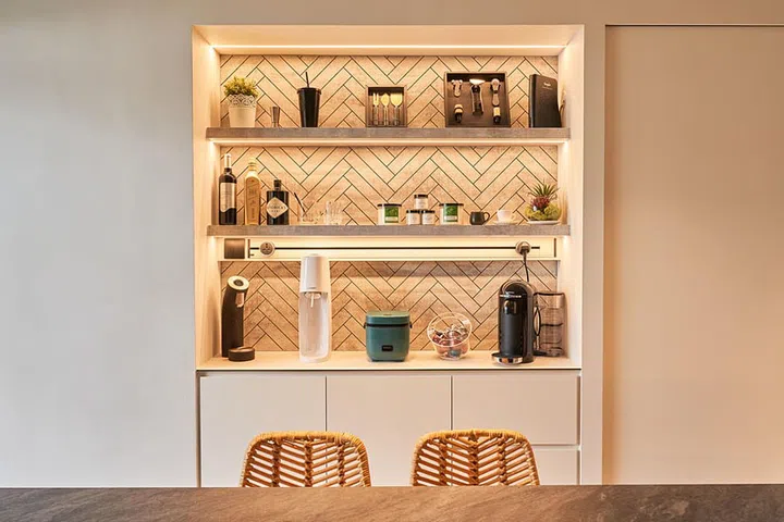 The home underwent an extensive two-month renovation period designed and overseen by interior design studio Rezt & Relax to fulfil Aiken’s design brief. Some of the most important considerations were a need for open communal areas for hosting people and plenty of storage space.