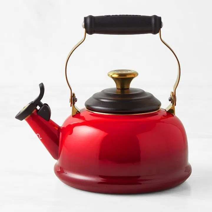 What do a train and tea kettle have in common? They both whistle. This particular tea kettle has a golden, single-note whistling spout for that purpose, and the number 9 3/4 on its lid handle. We love the subtle elegance – and it’s sure to be a conversation starter with guests.
