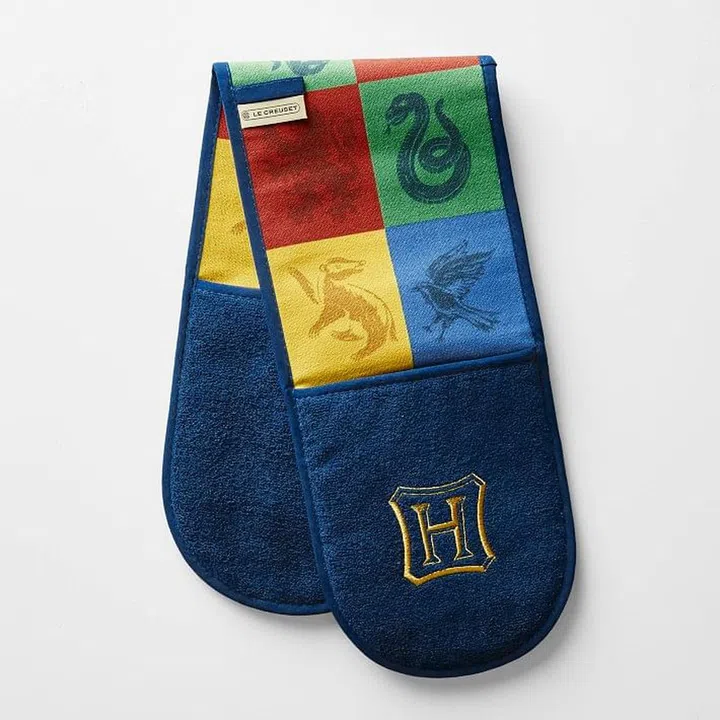Just like the Great Hall banner, but draped around your pot. Made of blue terrycloth and cotton canvas, with a quilted lining for insulation, this potholder comes in handy when carrying hot dishes from the kitchen to the dining table.