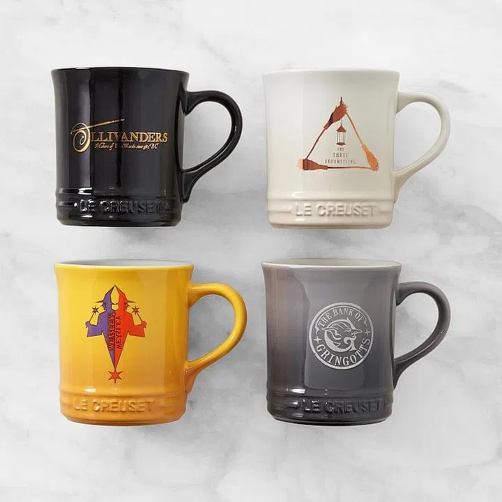 If each of the iconic stores in the book had their own logoed mugs, these would be it. Each of the four mugs in this set showcases a name that holds a special place in the hearts of Potter fans: Ollivander’s, Gringotts Bank, The Three Broomsticks, and Weasley’s Wizarding Wheezes. Can you spot which is which?