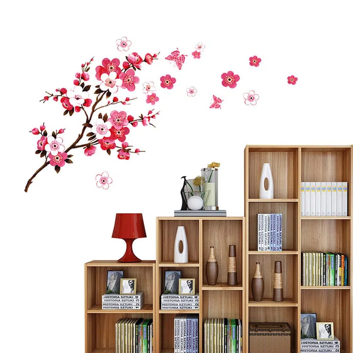 Wall decal is an affordable way to change up the feel of your room. This peel-and-stick cherry blossom design measures 65 x 80cm. It is self-adhesive and easy to remove without leaving any sticky residue and suitable for any smooth , clean and dry surface of walls, tiles, glass, furniture. Do not apply on textured surfaces.