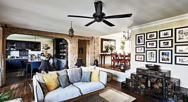 The architectural star in this freehold condo is undeniably the stone arch that opens to the kitchen and extends towards the balcony.Unable to find the right stones to create the authentic look they wanted, the owners hunted for a large boulder and had it cut and reshaped into smaller pieces by an artisan.
