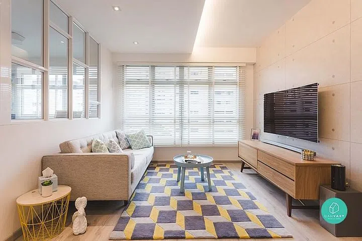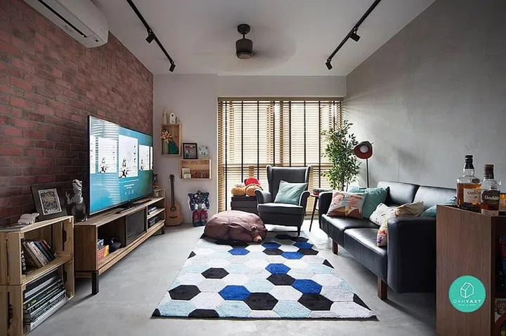 For a bit more colour, take inspiration from this Skyterrace@Dawson flat. Let your personality shine with unique furnishings like beanbags and a patterned area rug. Play with different wall textures and colours – it helps distract from a small space.