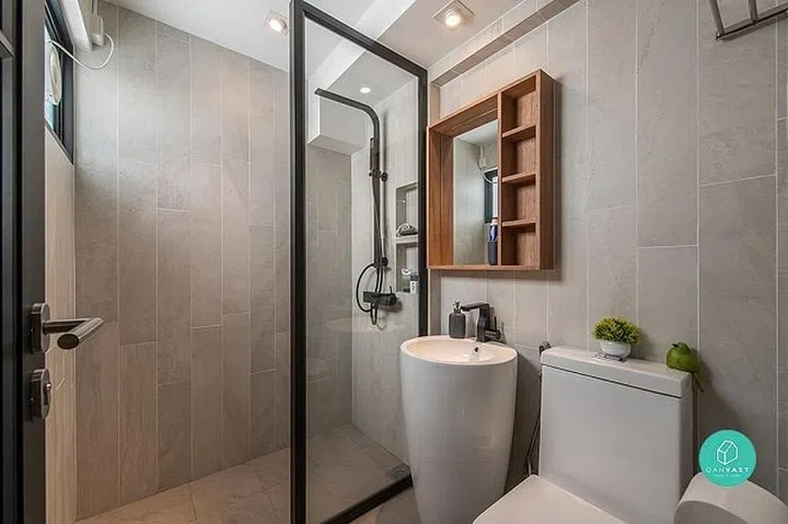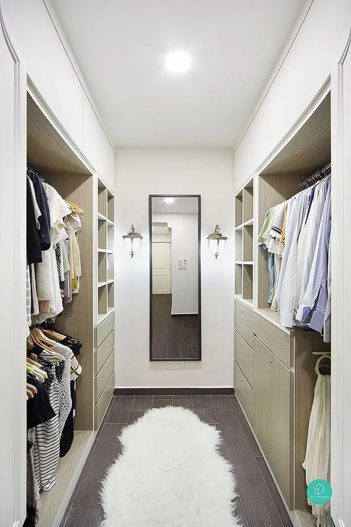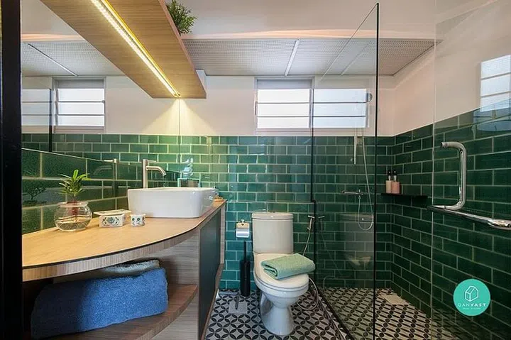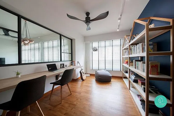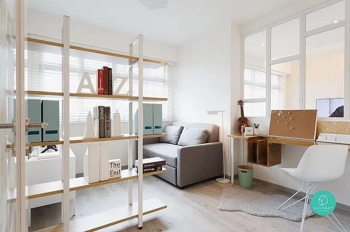 We love how this Sengkang apartment created more windows within the home to bring more light in. And the cute shelves with “roofs” are a charming touch.